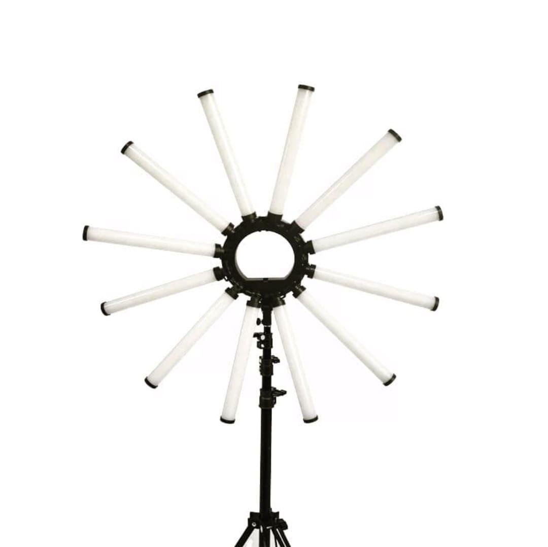 Professional radial LED tube light with multiple adjustable light arms, designed for even, shadow-free illumination—ideal for photography, videography, makeup shoots, and studio setups.